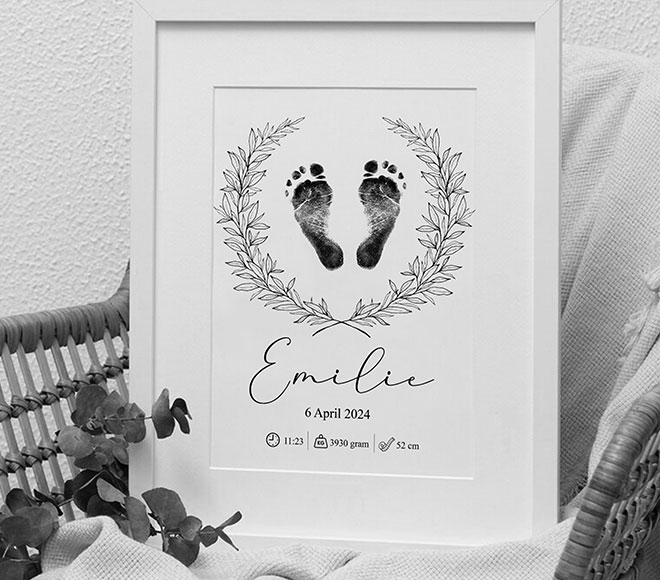 DISSE SMÅ FOTAVTRYKKENE BÆRER SPORENE AV DE FØRSTE STEGENE. SELV OM ÅRENE GÅR, VIL DISSE SPORENE MINNE DEG OM HVOR RASKT BARNET DITT VOKSER OG HVOR VERDIFULL HVER STUND ER.